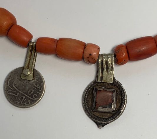Antique Moroccan Amazigh (Berber) Coral and Coin Necklace