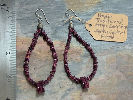 New Navajo - Traditional Jacla Earrings by Evelyn Begay - Purple Spiny Oyster