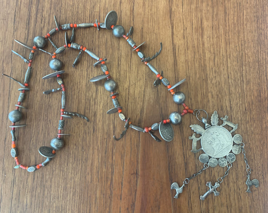 Antique Moroccan Amazigh (Berber) Coral and Coin Necklace