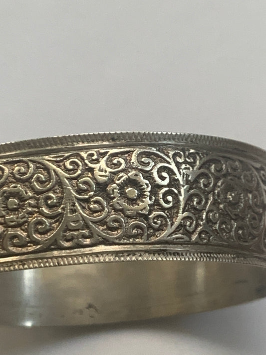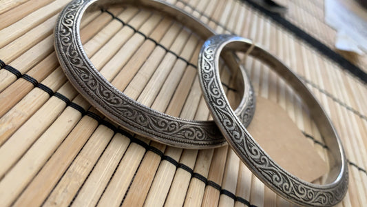 Engraved Solid Silver Moroccan Bangle Bracelets - Set of two