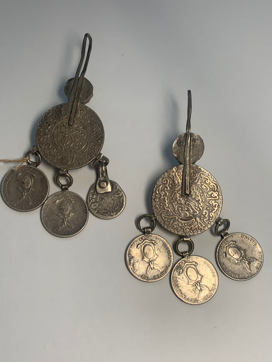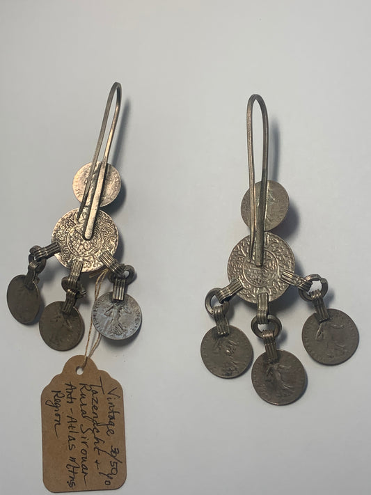 Vintage Moroccan Jingle Coin Earrings from Tazenacht, Morocco - Large