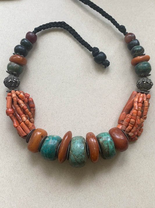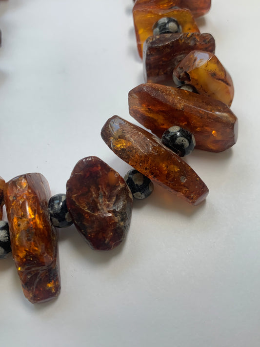 Vintage Ethiopian Amber & Skunk Bead Necklace - Restrung by Jenn